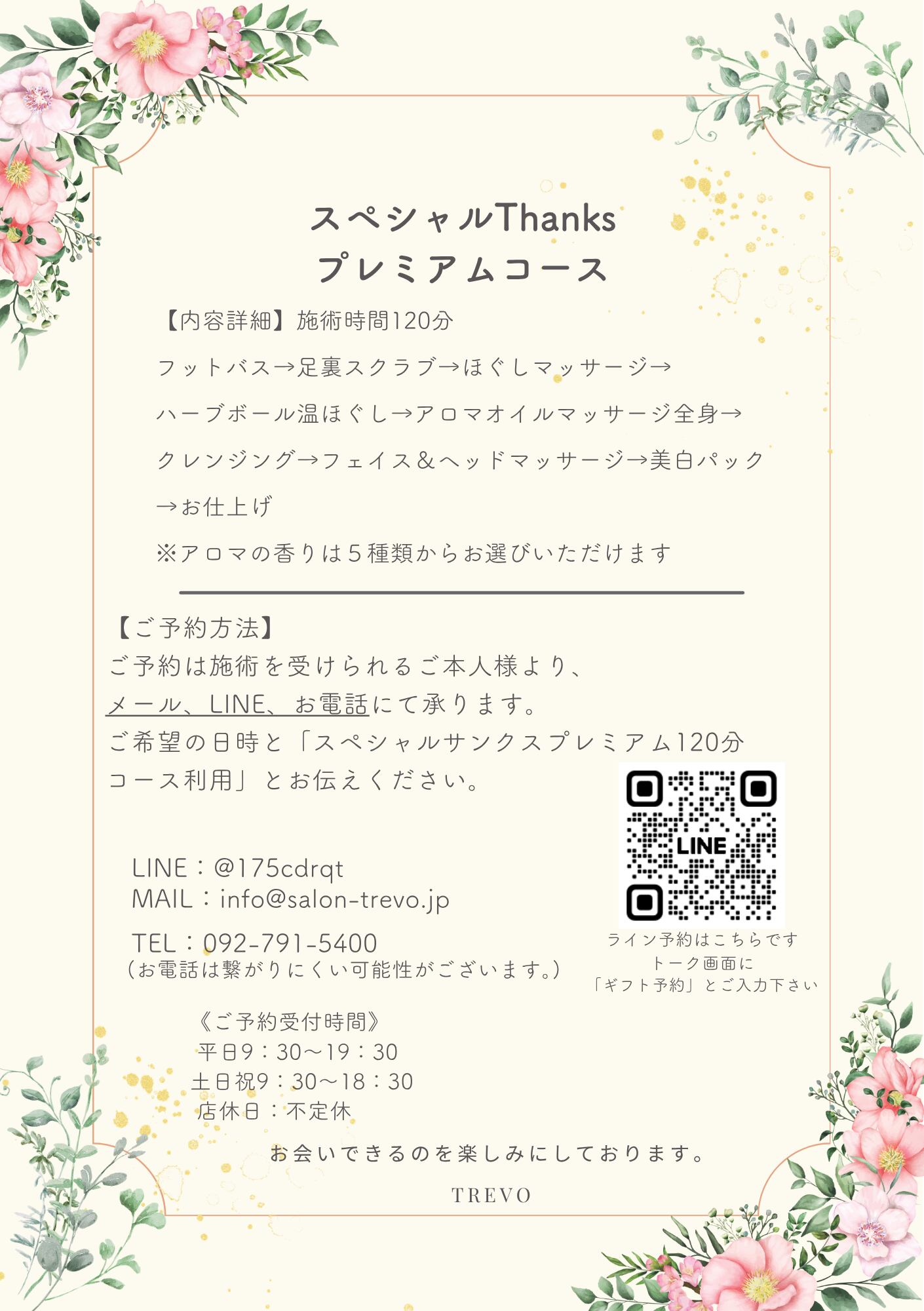 ・ご予約はLINE、メール、お電話にて承ります。